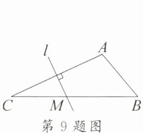 9. 如图,在 $ \triangle ABC $ 中,$ \angle C = 25^{\circ} $,$ AC $ 的垂直平分线 $ l $ 交 $ BC $ 于点 $ M $,$ AB + BM = BC $,则 $ \angle B $ 的度数为(