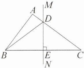 12. [2025·耒阳期末]如图,在 $ \triangle ABC $ 中,边 $ BC $ 的垂直平分线 $ MN $ 交 $ AC $ 于点 $ D $,交 $ BC $ 于点 $ E $,连接 $ BD $。