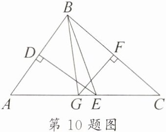 10. [整体思想]如图,在 $ \triangle ABC $ 中,$ AB $ 边的垂直平分线 $ DE $ 分别与 $ AB $,$ AC $ 交于点 $ D $,$ E $,$ BC $ 边的垂直平分线 $ FG $ 分别与 $ BC $,$ AC $ 交于点 $ F $,$ G $。若 $ \triangle BEG $ 的周长为 16,且 $ EG = 1 $,则 $ AC $ 的长为______。