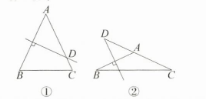 解:①当AB的垂直平分线与线段AC相交时,如图①,则∠A=180°−90°−40°=50°;②当AB的垂直平分线与CA的延长线相交时,如图②,则∠BAC=90°+40°=130°.所以此等腰三角形的顶角的度数为50°或130°.