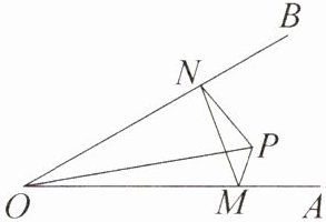 解:如图,作点 P 关于直线 OA 的对称点 F,作点 P 关于直线 OB 的对称点 G,连接 FG,分别交 OA,OB 于点 M,N,连接 OG,OF.所以 MP=MF,NP=NG,易知△PMN 周长的最小值为 FG.