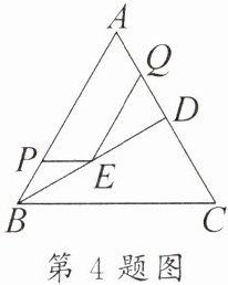 4. [2025·邵阳大祥区期末]如图,在等边三角形ABC中,BD是中线,点P,Q分别在AB,AD上,且BP= AQ= QD= 1,动点E在BD上,则PE+QE的最小值为