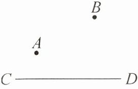 作点 B 关于 CD 的对称点 B',连接 AB'交 CD 于点 P,P 即为所求。