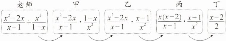 12. 老师设计了接力游戏,用合作的方式完成分式的计算,规则是:每人只能看到前一人给的式子,并进行一步计算,再将结果传递给下一人,整个计算的过程如图所示。接力中,甲、乙、丙、丁四人出错的是(
