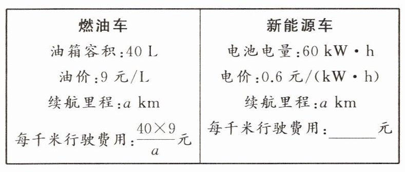 (1)用含$a$的代数式表示新能源车的每千米行驶费用。