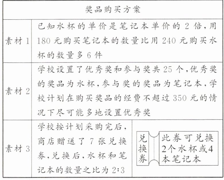(3)学校用4张兑换券兑换水杯,用3张兑换券兑换笔记本.