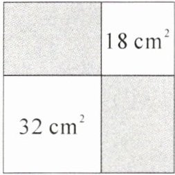 12. [新教材新题型:P74 习题 T7 变式题]如图,从一个大正方形中裁去面积分别为 $18 cm^2$ 和 $32 cm^2$ 的两个小正方形,留下两个相同的阴影部分。求: