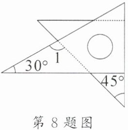 8. [2025·浏阳期末]如图,将一副直角三角板如图放置,使含$30^{\circ}角的三角板的短直角边和含45^{\circ}$角的三角板的一条直角边重合,则$\angle 1= $(