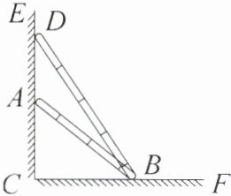 9. 新考向 情境题·竹竿 如图,两根竹竿$AB和BD斜靠在墙CE$上,量得$\angle CAB$,$\angle CDB的度数分别为51^{\circ}$,$34^{\circ}$,则这两根竹竿的夹角$\angle ABD$的度数是______。
