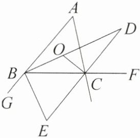 2. [2024·衡阳衡南县期末]如图,在△ABC 中,∠ABC,∠ACB 的平分线相交于点 O,外角∠ACF 的平分线所在直线与∠ABC 的平分线相交于点 D,与外角∠CBG 的平分线相交于点 E,则下列结论一定正确的是______(填序号).