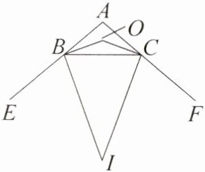 [逆向变式]如图,O 是△ABC 两内角平分线的交点,I 是△ABC 两外角平分线的交点.若∠I = 40°,求∠O 的度数.