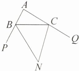 【拓展母题】如图,在△ABC 中,外角∠PBC 的平分线与外角∠QCB 的平分线相交于点 N.若∠A = α,试用α表示∠N.