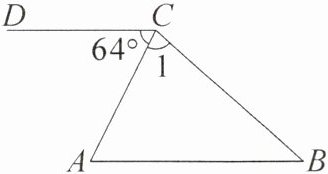 因为∠ACD = 64°,所以∠A = ∠ACD。