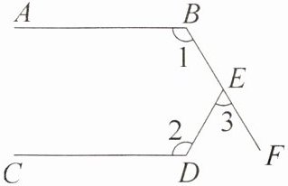 10. 如图,AB // CD,DE 与 BF 相交于点 E,求证:∠3 = ∠1 + ∠2 - 180°.