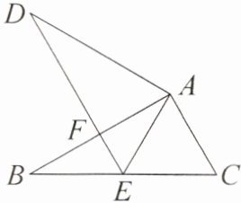 14. 如图,△ABC≌△ADE,点 E 在边 BC 上,AB 与 DE 交于点 F。