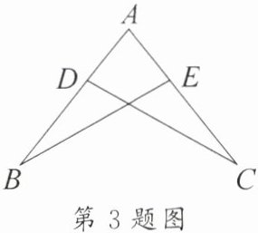 3. 如图,点 D,E 分别在 AB,AC 上,AB = AC,BE = CD,要使△ABE≌△ACD,依据“边边边”,则还需补充条件: