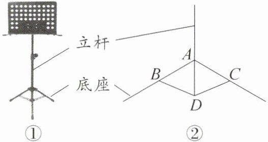 2. 新考向 情境题·乐谱架 图①是一个乐谱架,利用立杆可进行高度调节,图②是底座部分的平面图,其中支撑杆 AB = AC,BD,CD 是连接立杆和支撑杆的支架,且 BD = CD.立杆在伸缩过程中,总有△ABD≌