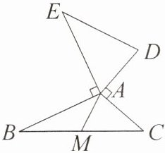如图,$AB = AE$,$AB\perp AE$,$AD = AC$,$AD\perp AC$,$M$ 为 $BC$ 的中点,求证:$DE = 2AM$。