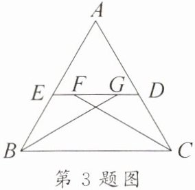 3. [2025·株洲攸县期末]如图,在 $\triangle ABC$ 中,$ED // BC$,$\angle ABC$ 和 $\angle ACB$ 的平分线分别交 $ED$ 于点 $G$,$F$。若 $FG = 4$,$ED = 8$,则 $BE + CD = $