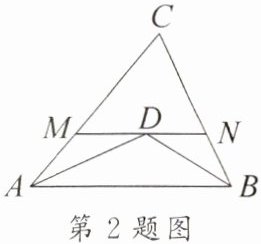 2. [整体思想]如图,在 $\triangle ABC$ 中,$\angle CAB$ 的平分线 $AD$ 与 $\angle CBA$ 的平分线 $BD$ 交于点 $D$,过点 $D$ 作 $AB$ 的平行线分别交 $AC$,$BC$ 于点 $M$,$N$。若 $\triangle ABC$ 与 $\triangle CMN$ 的周长分别为 $24$,$15$,则 $AB$ 的长为