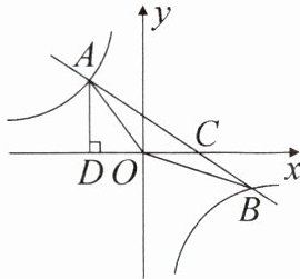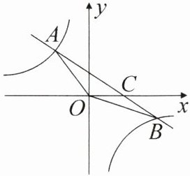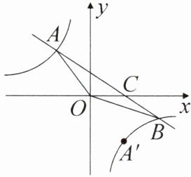 【例题】如图,已知 $ A(-3,4) $,$ B(n,-2) $ 是一次函数 $ y = kx + b $ 的图象和反比例函数 $ y = \frac{m}{x} $ 的图象的两个交点,直线 $ AB $ 与 $ x $ 轴交于点 $ C $。