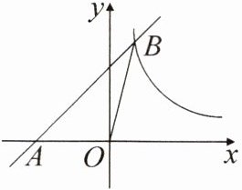 1. [2024·湖北中考]如图,一次函数 $ y = x + m $ 的图象与 $ x $ 轴交于点 $ A(-3,0) $,与反比例函数 $ y = \frac{k}{x} $($ k $ 为常数,$ k \neq 0 $,$ x > 0 $)的图象交于点 $ B(n,4) $,连接 $ OB $。