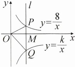 4. 如图,在平面直角坐标系中,$ M $ 为 $ x $ 轴正半轴上一点,过点 $ M $ 的直线 $ l // y $ 轴,且直线 $ l $ 分别与反比例函数 $ y = \frac{8}{x} $ 和 $ y = \frac{k}{x} $ 的图象交于 $ P,Q $ 两点. 若 $ S_{\triangle POQ} = 15 $,则 $ k $ 的值为(