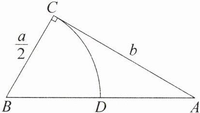 12. 新考向 数学文化·方程的图解法 数学家欧几里得在《几何原本》中给出了形如 $x^{2}+ax = b^{2}(a>0,b>0,a,b$ 为常数)的方程的图解法:如图,以 $\frac{a}{2}$ 和 $b$ 为两直角边作 $Rt\triangle ABC$,再在斜边上截取 $BD = BC$,则该方程的一个正实数根等于线段