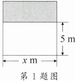 1. 如图,某小区中央花园有一块长方形花圃,它的长为 $ x $ m,宽为 $ 5 $ m。若长不变,将宽扩大,使得扩大后的花圃变成正方形,且面积比原来增加 $ 15 $ m^2,则可列方程为(