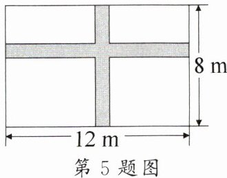 5. [教材 P52 练习 T1 变式题]如图,在一块长为 $ 12 $ m、宽为 $ 8 $ m 的矩形空地上修建同样宽的两条互相垂直的道路(两条道路各与矩形的一边平行),剩余部分栽种花草,且栽种花草的面积为 $ 77 $ m^2,则道路的宽为