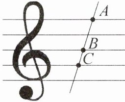 7. 新考向 跨音乐·五线谱| 如图,五线谱是由等距离、等长度的五条平行横线组成的,同一条直线上的三个点 A,B,C 都在平行横线上。若线段 AB= 3,则线段 BC 的长是(