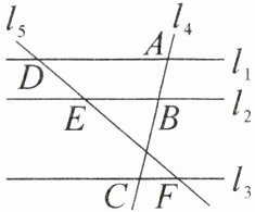 3. [2025·永州道县期中]如图,直线$ l_1,l_2,l_3 $分别交直线$ l_4 $于点 A,B,C,交直线$ l_5 $于点 D,E,F,且$ l_1//l_2//l_3。$
