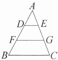1. 如图,D,F 是线段 AB 的三等分点,点 E,G 在 AC 上。若 DE//FG//BC,则 EG 与 GC 的大小关系是(