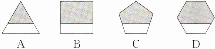 12. 如图,平行于正多边形一边的直线,把正多边形分割成两部分,则多边形(阴影部分)与原正多边形相似的是(