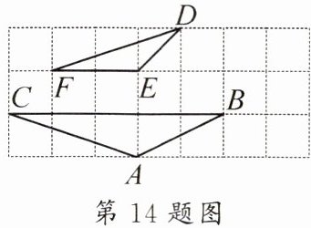 14. 如图,在正方形网格中,△ABC和△EDF相似,则∠ABC+∠ACB的度数为