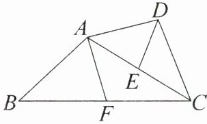 8. 如图,$\triangle ABC\backsim\triangle DAC$,$AE = EC$,$BF = FC$,$DE = 8$,$AF = 12$,求$AB:AD$的值。