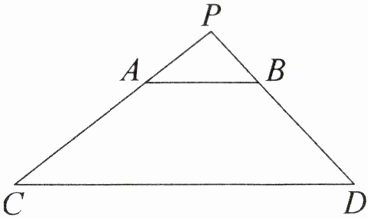 3. [教材P86例9变式题]如图,在$\triangle PCD$中,$AB// CD$,$AB = 2\mathrm{cm}$,$CD = 6\mathrm{cm}$,点$P到CD的距离是2.7\mathrm{cm}$,求$AB与CD$间的距离。