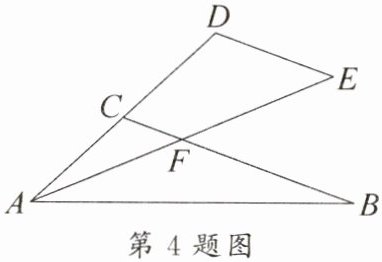 4. [2024·重庆中考 A 卷]如图,在 $\triangle ABC$ 中,延长 $AC$ 至点 $D$,使 $CD= CA$,过点 $D$ 作 $DE // CB$,且 $DE= DC$,连接 $AE$ 交 $BC$ 于点 $F$. 若 $\angle CAB= \angle CFA$,$CF= 1$,则 $BF= $