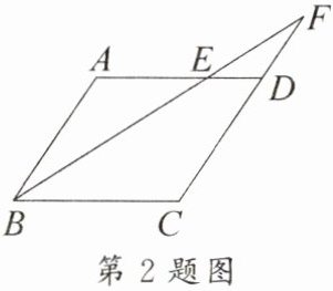 2. 如图,$E$ 是 $□ ABCD$ 的边 $AD$ 上的一点,且 $DE:AE= 1:2$,$BE$ 和 $CD$ 的延长线相交于点 $F$. 若 $DE= 3$,$DF= 4$,则 $□ ABCD$ 的周长为(