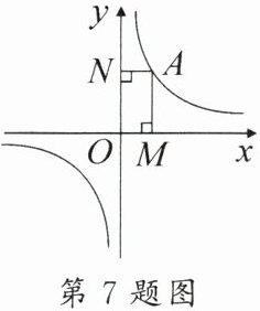7. 如图,在平面直角坐标系中,$O$是坐标原点,点$A是反比例函数y= \frac{2}{x}(x\gt0)$的图象上的一点,过点$A分别作AM\perp x轴于点M$,$AN\perp y轴于点N$,则四边形$AMON$的面积为(