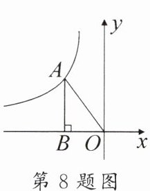 8. [2024·邵阳期末]如图,点$A在反比例函数y= \frac{k}{x}$($k$为常数,$k\neq0$,$x\lt0$)的图象上,$AB\perp x轴于点B$.若$\triangle ABO的面积是4$,则$k= $