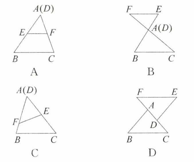 4. 下列图形中,△ABC∽△DEF,则这两个三角形不是位似图形的是(
