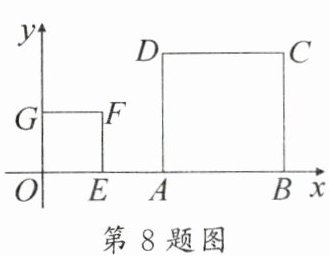 8. 如图,正方形OEFG和正方形ABCD是位似图形,点F的坐标为(1,1),点C的坐标为(4,2),则这两个正方形的位似中心的坐标是