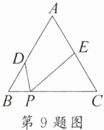 9. [2025·郴州桂阳县期中]如图,已知等边三角形ABC的边长为8,点D,P,E分别在边AB,BC,AC上,BD= 3,E为AC的中点,当△BPD与△PCE相似时,BP的长为