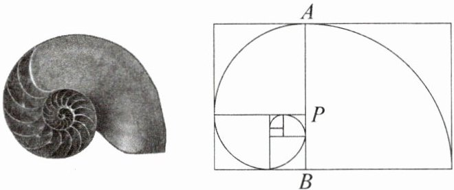 3. 鹦鹉螺曲线的每个半径与后一个半径的比都是黄金分割比.如图,点$P是AB的黄金分割点(AP > BP)$,若线段$AB的长为8\mathrm{cm}$,则$AP$的长为______$\mathrm{cm}$(结果保留根号).
