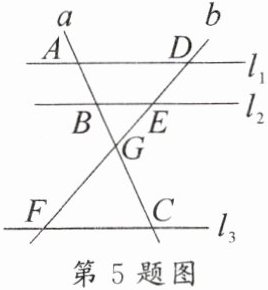 5. 如图,$l_1 // l_2 // l_3$,直线$a,b相交于点G$,与这三条平行线分别相交于点$A,B,C和点D,E,F$,下列比例式中错误的是(