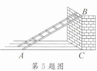 5. 新考向 情境题·斜梯 如图,梯子倾斜靠在墙上,若梯子 $ AB $ 长 $ 1.8 m $,$ \sin \angle BAC = \frac{1}{2} $,则梯子顶端 $ B $ 到地面的高度 $ BC $ 是