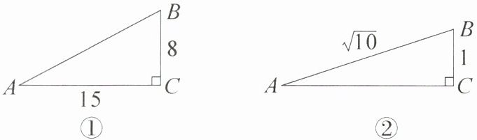 7. [教材 P110 例 1 变式题]在 $ Rt \triangle ABC $ 中,$ \angle C = 90^{\circ} $,数据如图①、图②所示。求 $ \sin A $ 和 $ \sin B $ 的值。