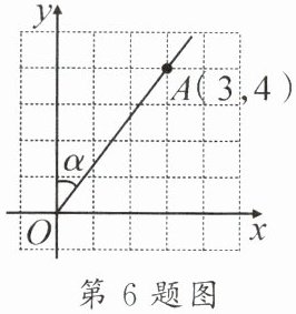 6. [教材 P111 练习 T2 变式题]如图,在平面直角坐标系中,点 $ A $ 的坐标为 $ (3, 4) $,则 $ \sin \alpha $ 的值是
