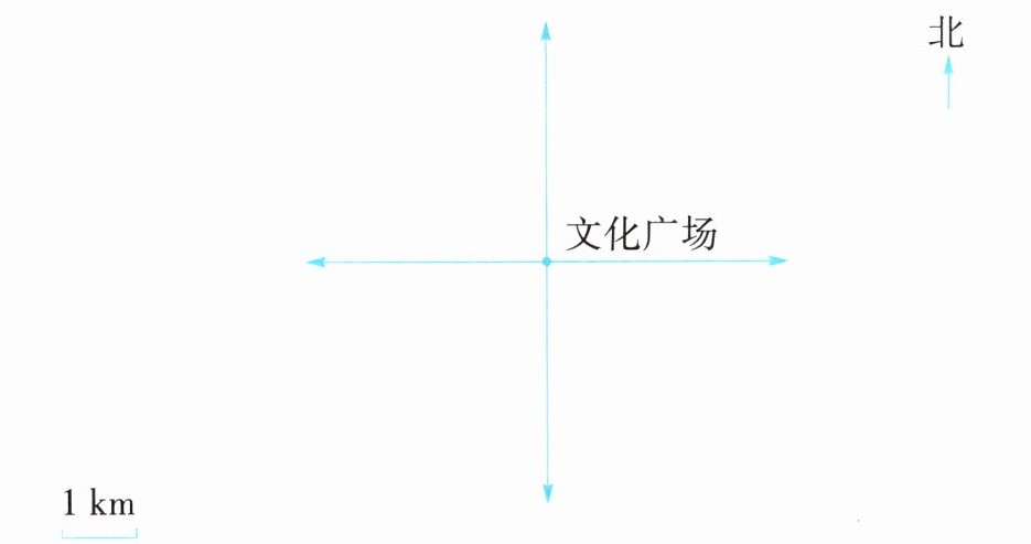 (1)体育馆在文化广场正北方向 $2.5$ km 处。